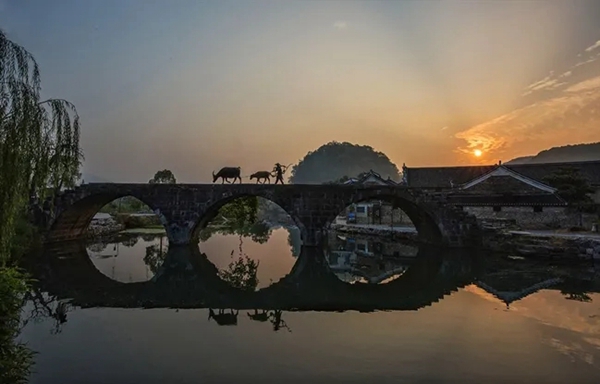 站在这座千年石桥上看风景,“忠孝廉节”的摩崖石刻依稀可见,岸上有座文昌阁,从宋代开始,圣人之教就在这里传承,香火千年未断。倒映在水中的文昌阁,和步瀛桥交相辉映,不仅构成了上甘棠村一道美丽的风景,也揭示了这座小村庄最弥足珍贵的传承。