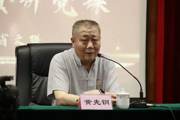 仪式后,党员干部观看了老党员冯增荣采访视频,并聆听原省文联党组成员、副主席、书记处书记,著名剧作家黄先钢讲党课。