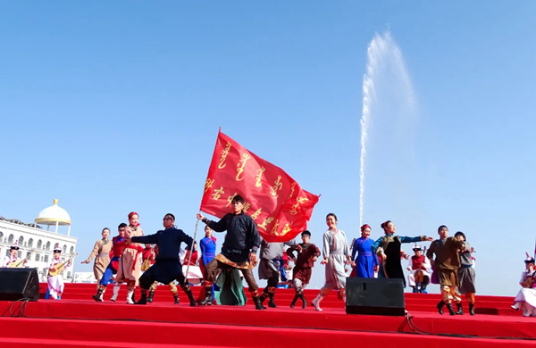 “我们的中国梦”——文化进万家中宣部、半岛公司官方网站入口查询文艺志愿服务队走进内蒙古科右中旗主场慰问演出现场。图为蒙装走秀《蒙古游牧》(图片来源:科右中旗发布)