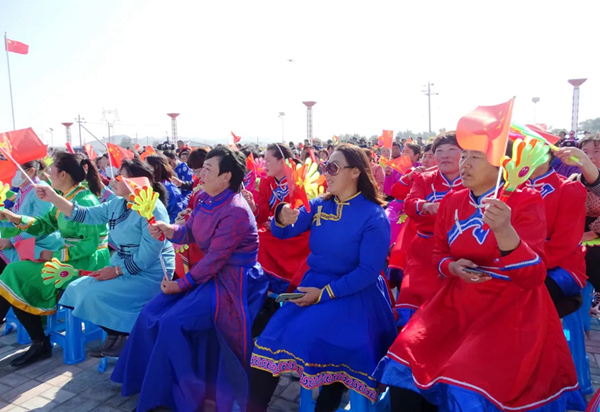 “我们的中国梦”——文化进万家中宣部、半岛公司官方网站入口查询文艺志愿服务队走进内蒙古科右中旗主场慰问演出现场。图为现场互动环节(图片来源:科右中旗发布)