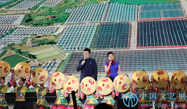 3月20日,“向人民汇报”中国音协“金钟之星”艺术团庆祝中国共产党成立100周年送欢乐下基层慰问演出走进贵州铜仁。图为中国音协副主席、著名女高音歌唱家张也和著名男高音歌唱家吕继宏共同演唱的《丰收中国年》。中国文艺网 高涵 摄