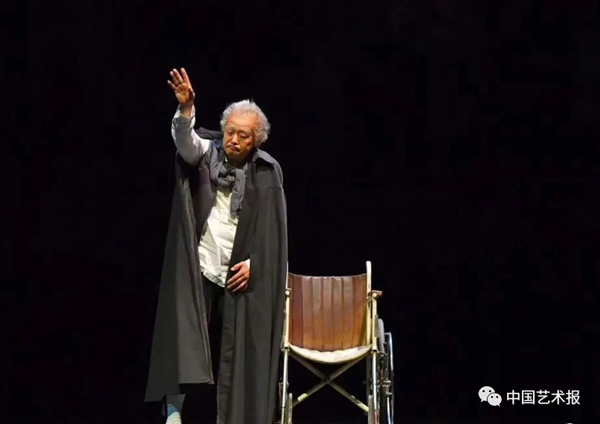 话剧表演艺术家蓝天野在北京人艺建院68周年纪念演出中上演《蔡文姬》片段