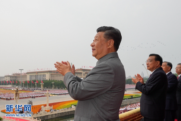 神州大地欣欣向荣、气象万千,首都北京花团锦簇、旌旗飘扬。在伟大的中国共产党领导下,近代以后久经磨难的中华民族迎来了从站起来、富起来到强起来的伟大飞跃,14亿多中国人民正意气风发走在中国特色社会主义新时代的壮丽征程上。