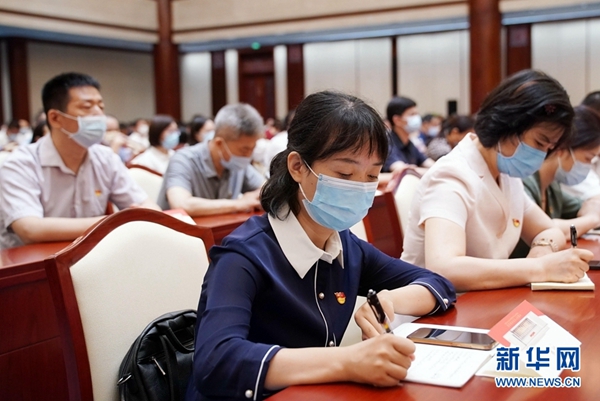 这是7月5日在北京拍摄的报告会会场。 新华社记者 陈晔华 摄