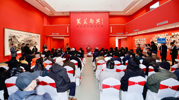 1月20日,“美美与共——中国画名家合作展”在中国国家画院美术馆西院展区开幕。展览汇聚了近30位当代中国画坛的优秀艺术家,共同创作《草满花堤》《百花鹤瑞》《春天来了》《和煦春风》《燕山秋色》《沸腾的草原》《重岩叠翠》《泰山奇松》《放翁散情》《雅集图记》等作品,涵盖山水、人物、花鸟等多种题材。