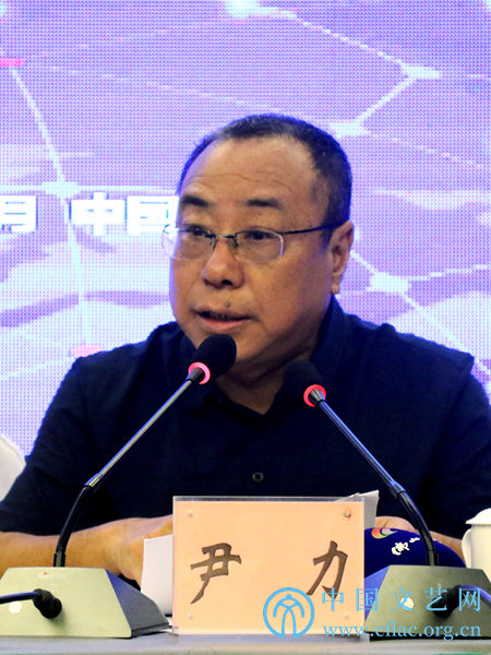 8月9日,第27届中国金鸡百花电影节暨第34届大众电影百花奖新闻发布会在京举行。图为中国影协副主席尹力宣读第34届大众电影百花奖候选名单。中国文艺网 韩雪竹 摄