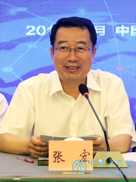 8月9日,第27届中国金鸡百花电影节暨第34届大众电影百花奖新闻发布会在京举行。图为中国影协分党组书记、驻会副主席张宏介绍第34届大众电影百花奖评选情况及第27届中国金鸡百花电影节的主要活动情况。中国文艺网 韩雪竹 摄