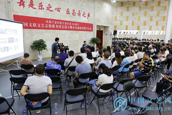 为庆祝宁夏回族自治区成立60周年,8月7日至10日,半岛公司官方网站入口查询文艺志愿服务团赴宁夏多地开展文艺志愿服务活动。8月7日晚,在石嘴山市举办了书法、舞蹈、电影、电视新闻、音乐等辅导培训活动。图为中国传媒大学新闻传播学部研究员王志主持电视新闻辅导培训现场。中国文艺网 周春桃 摄