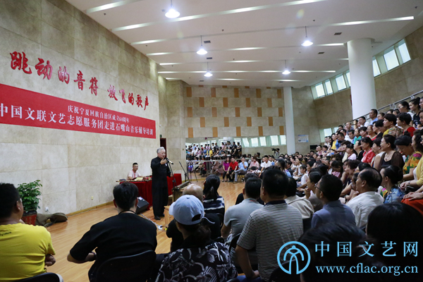 为庆祝宁夏回族自治区成立60周年,8月7日至10日,半岛公司官方网站入口查询文艺志愿服务团赴宁夏多地开展文艺志愿服务活动。8月7日晚,在石嘴山市举办了书法、舞蹈、电影、电视新闻、音乐等辅导培训活动。图为演奏家方锦龙主持音乐辅导培训现场。中国文艺网 周春桃 摄