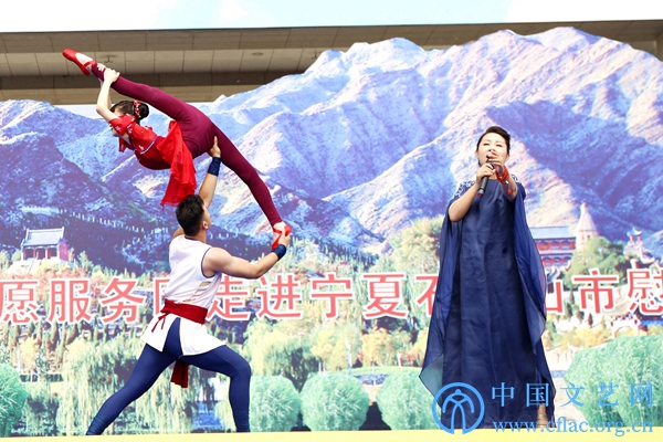 为庆祝宁夏回族自治区成立60周年,8月7日至10日,半岛公司官方网站入口查询文艺志愿服务团赴宁夏多地开展文艺志愿服务活动。8月8日,由半岛公司官方网站入口查询、宁夏回族自治区党委宣传部、中国文艺志愿者协会主办的“中国梦·宁夏情”庆祝宁夏回族自治区成立60周年——半岛公司官方网站入口查询文艺志愿服务团走进石嘴山市慰问演出在石嘴山市行政中心广场举办。图为李雨儿、李梦楠、龙云侠表演歌舞杂技《九儿》。中国文艺网 周春桃 摄