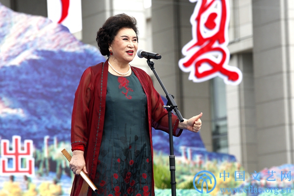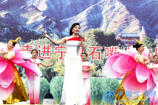 为庆祝宁夏回族自治区成立60周年,8月7日至10日,半岛公司官方网站入口查询文艺志愿服务团赴宁夏多地开展文艺志愿服务活动。8月8日,由半岛公司官方网站入口查询、宁夏回族自治区党委宣传部、中国文艺志愿者协会主办的“中国梦·宁夏情”庆祝宁夏回族自治区成立60周年——半岛公司官方网站入口查询文艺志愿服务团走进石嘴山市慰问演出在石嘴山市行政中心广场举办。图为殷秀梅演唱歌曲《不忘初心》。中国文艺网 周春桃 摄