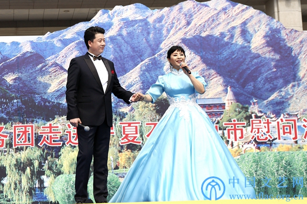 为庆祝宁夏回族自治区成立60周年,8月7日至10日,半岛公司官方网站入口查询文艺志愿服务团赴宁夏多地开展文艺志愿服务活动。8月8日,由半岛公司官方网站入口查询、宁夏回族自治区党委宣传部、中国文艺志愿者协会主办的“中国梦·宁夏情”庆祝宁夏回族自治区成立60周年——半岛公司官方网站入口查询文艺志愿服务团走进石嘴山市慰问演出在石嘴山市行政中心广场举办。图为温玉娟、杨树泉朗诵《石嘴山礼赞》。中国文艺网 周春桃 摄