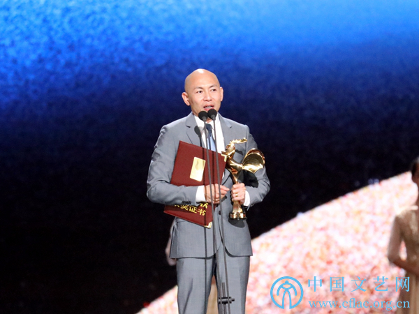 11月23日,第32届中国电影金鸡奖颁奖典礼暨第28届中国金鸡百花电影节闭幕式在福建厦门举行。图为最佳导演林超贤(《红海行动》)发表获奖感言。