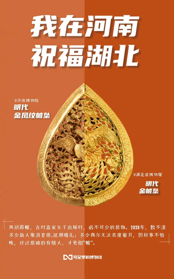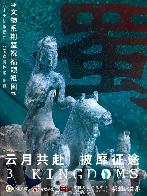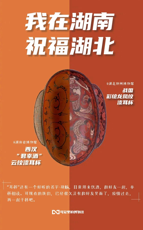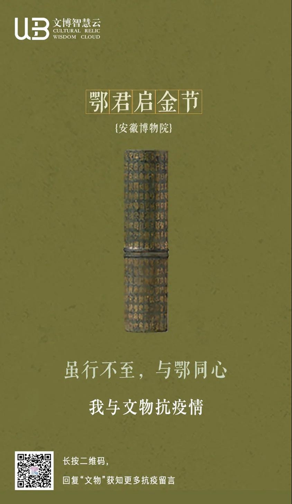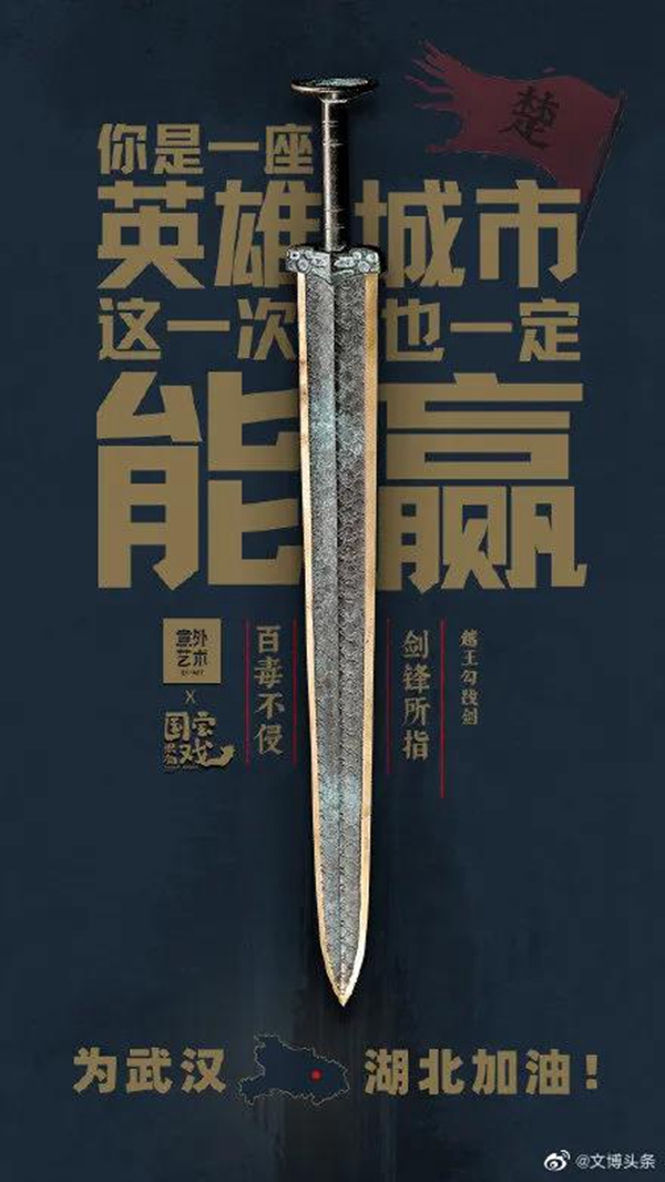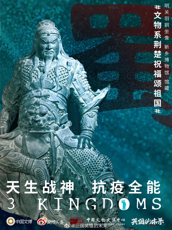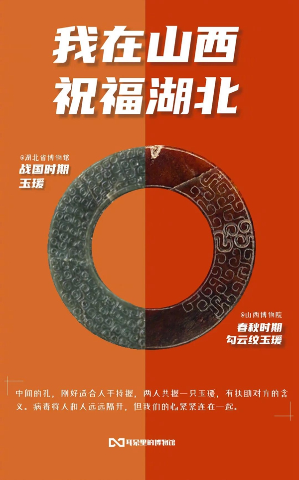 白衣裹热血的“白釉碗”、长毋相忘的“银带钩”,击缶而歌的“青铜冰鉴缶”,祝愿平安喜乐的“甜白釉梅瓶”......2020年年初,新冠肺炎疫情肆虐全国之际,微博联合@中国文博 及海内外100多家文博机构组织开展“文物系荆楚 祝福颂祖国”祝福接力活动,各地博物馆纷纷拿出镇馆之宝,制作成精美海报,中华瑰宝接力鼓劲,用五千年文化底蕴为抗疫行动汇聚精神力量,通过丰富的文物展示传递美好的祝福和必胜的信念。 近日,中国文艺网将这批作品汇总编辑,制作推出文博战疫系列高清海报大赏,今日推出第二期“九州同心”,以此为正在进行的疫情防控阻击战贡献心力。
