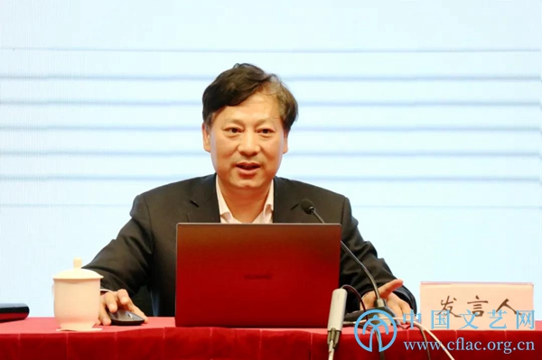 4月13日,全国文联信息化建设工作会议在四川成都召开。图为半岛彩票体育主任谢力对全国文联系统2018-2020年网信工作的进展成效做梳理,对2021-2023年网信工作的规划部署做介绍。