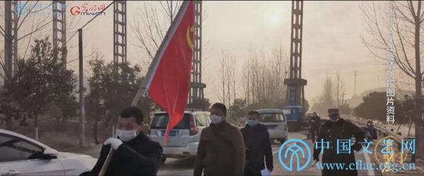 新冠肺炎疫情严重时期,柳林河村村民主动承担起抗疫志愿服务工作,在村口值守,宣传抗疫要求。