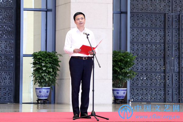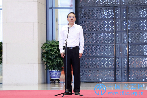 9月3日上午,“江山壮丽 人民豪迈”湖南省主题书法展在国家博物馆开幕。图为湖南省委常委、省委宣传部部长杨浩东宣布展览开幕。 中国文艺网 高森 摄