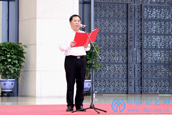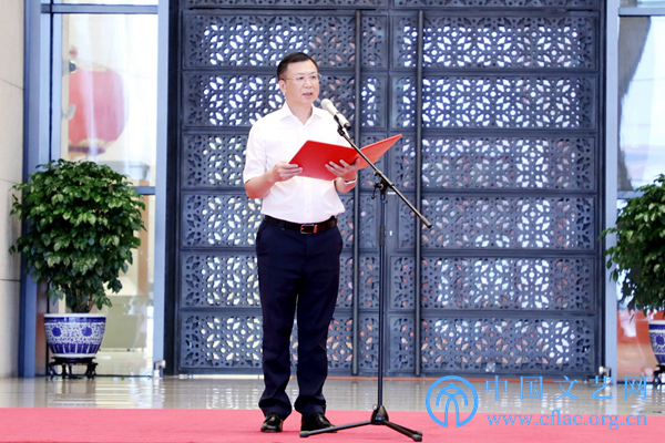 9月3日上午,“江山壮丽 人民豪迈”湖南省主题书法展在国家博物馆开幕。图为湖南省文联党组书记、副主席夏义生主持开幕式。 中国文艺网 高森 摄
