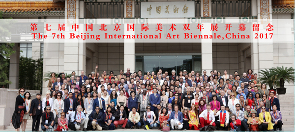 第七届中国北京国际美术双年展开幕式后中外艺术家大合影。