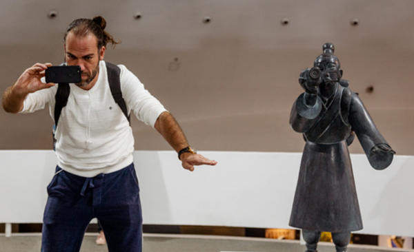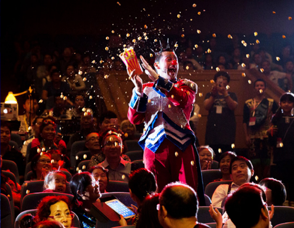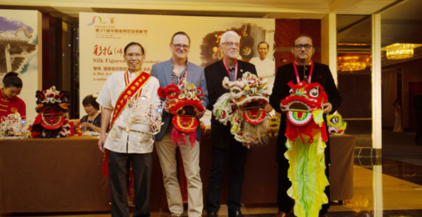 2018金鸡国际影展开幕式上,国际电影人欣赏极具地方特色的佛山狮头。