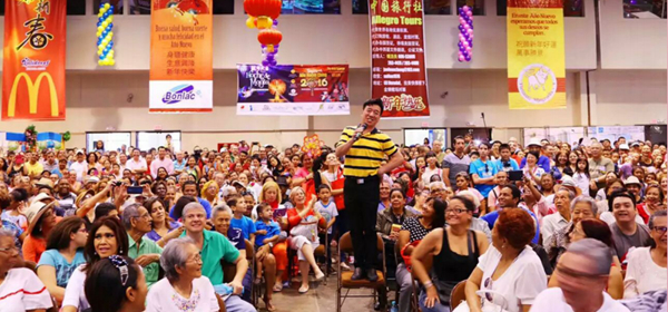 2016年2月,中国曲协赴巴拿马参加“欢乐春节”活动。图为刘全和、刘全利表演幽默小品。