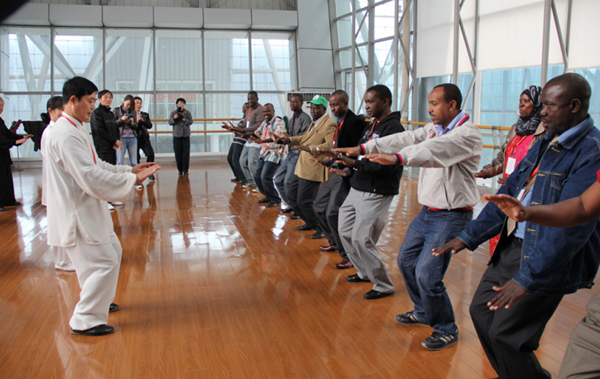 半岛公司官方网站入口查询文艺研修院于2013年举办国际研修班。图为外国学员在华培训期间学习太极拳动作。