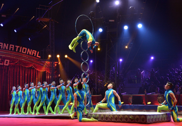摩纳哥蒙特卡洛国际马戏节是世界上第一个国际马戏节。自1981年中国杂协组派中国杂技节目参赛,至今共荣获16尊最高奖“金小丑”奖。图为中国杂技团在2013年第37届蒙特卡洛马戏节获奖节目《圣斗——地圈》。