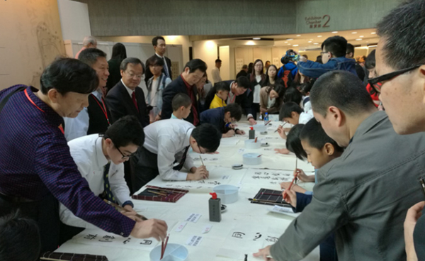 内地书法家为首届香港青少年书法大赛获奖学生进行现场指导。