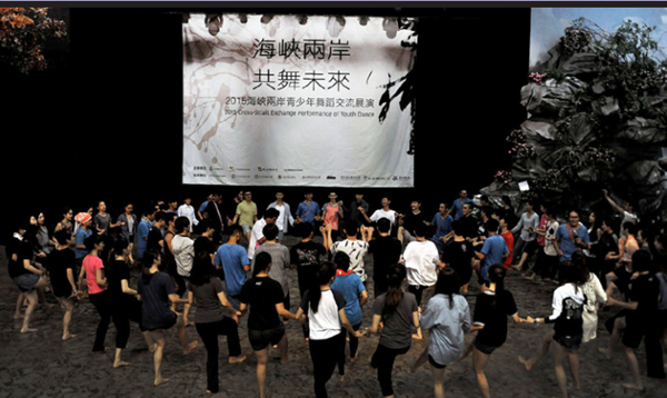 2015年,海峡两岸青少年舞蹈交流展演在台湾举办。图为两岸学生联谊现场。