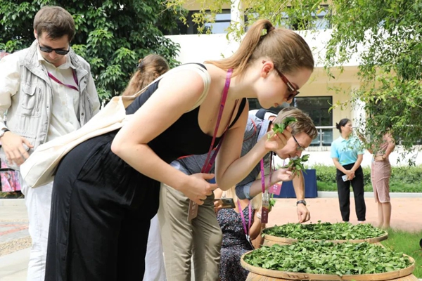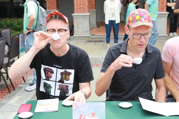 10月14日,来自印度、哈萨克斯坦、韩国、摩洛哥、尼泊尔、荷兰、菲律宾、波兰、斯里兰卡、坦桑尼亚、赞比亚、津巴布韦等12个国家的艺术家与福建、青海、新疆以及港澳台地区的多个艺术团成员来到溪禾山铁观音文化园体验安溪铁观音斗茶、品茶、制茶体验活动。