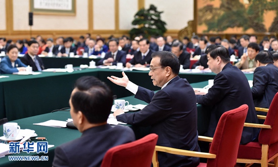 3月6日,中共中央政治局常委、国务院总理李克强参加十二届全国人大四次会议山东代表团的审议。 新华社记者 高洁 摄