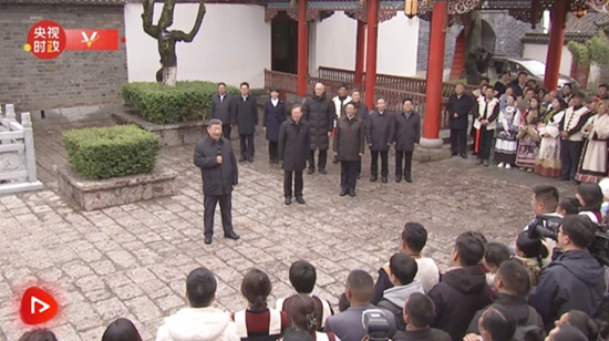 在丽江古城,总书记重点了解当地加强历史文化遗产保护利用、铸牢中华民族共同体意识等情况,不时停下脚步同当地居民和沿途游客交流。