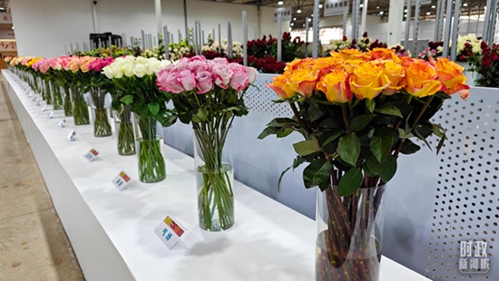△展厅里展示的鲜花品种。(总台央视记者赵东辰拍摄)