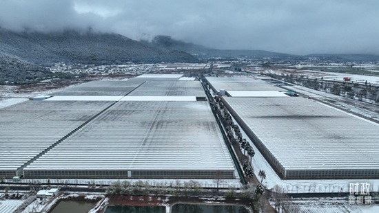 △银装素裹的丽江现代花卉产业园。(总台央视记者郭鸿拍摄)