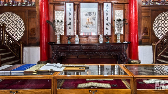 △木府万卷楼里的书籍和文物展陈。(总台央视记者陆泓宇拍摄)