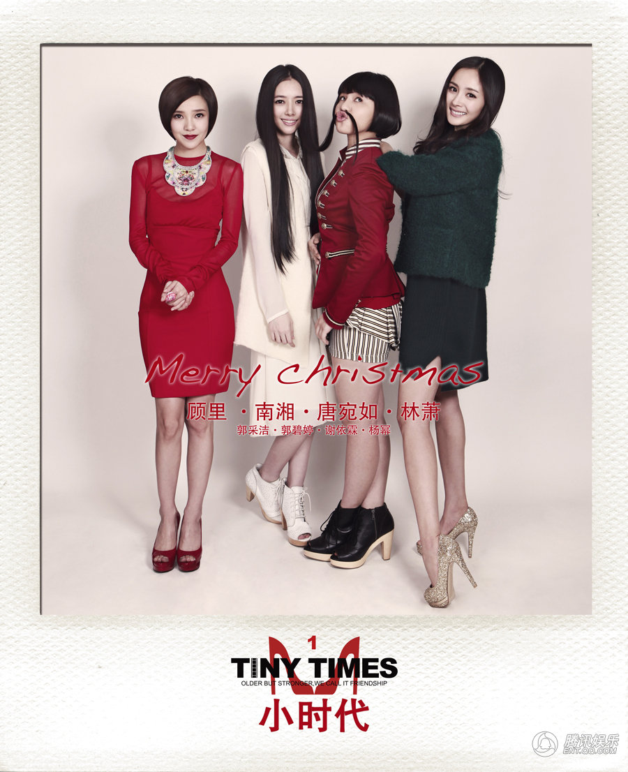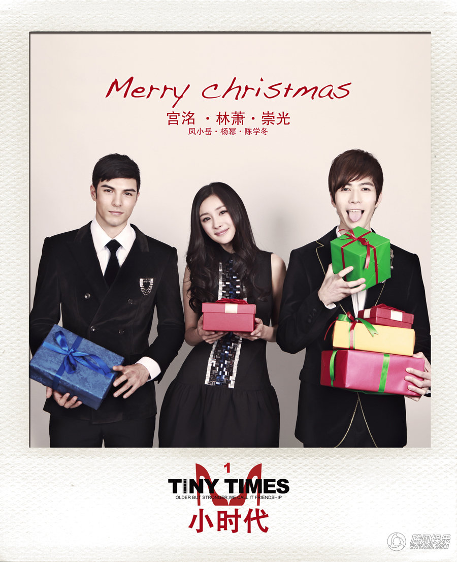 近日,电影《小时代》的主演们拍摄了一组圣诞大片,片中杨幂、郭采洁、郭碧婷以及“hold住姐”谢依霖四位“最美”女主演首次齐亮相,“hold住姐”谢依霖依旧不改搞怪本色,迷你短裙装格外抢眼。四人头戴圣诞帽给末日之后这个特殊的圣诞节送上最美的祝福。电影中对手戏较多的凤小岳、杨幂和陈学冬还单独拍摄了一组圣诞送大礼的宣传照,片中凤小岳冷酷的屹立在互相打闹的陈学冬与杨幂身边,似乎也暗示了三人在电影中的复杂关系。这组宣传照中演员们欢快活泼的风格格外醒目,这也恰恰突出了电影《小时代》青春时尚的基调。