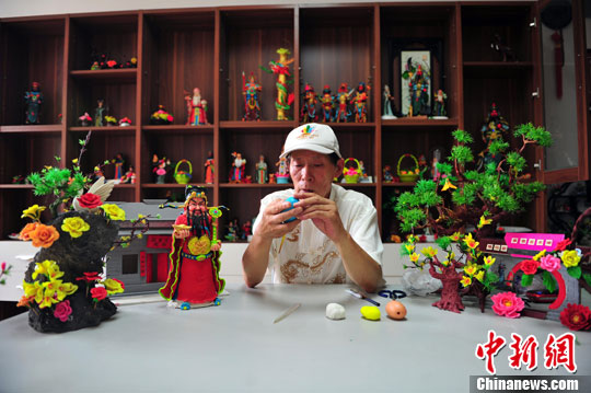 7月29日,陈化勤老人的“面塑”作品。中新社发 于海洋 摄
