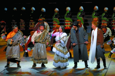 10月26日晚,第十届中国艺术节在山东省青岛市青岛大剧院圆满落下帷幕。图为闭幕式演出上歌剧《红河谷》的演出剧照。中国文化报记者陈曦 摄