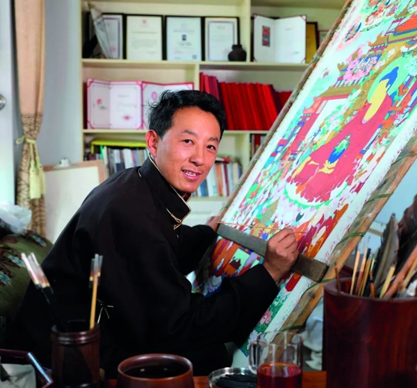 如今,贡觉杰的一幅作品在艺术品市场上的价格一度高达100万元,但对他而言,金钱从不是他在意的东西,他更在意的是让更多人认识到唐卡这项传统文化的结晶,是需要保护和传承的非物质文化遗产,“我创作的初心是传承这门传统技艺,我的一幅作品为国家艺术馆起到一点点缀作用,能让更多的人了解藏族唐卡(勉萨画派),就觉得很有意义。”