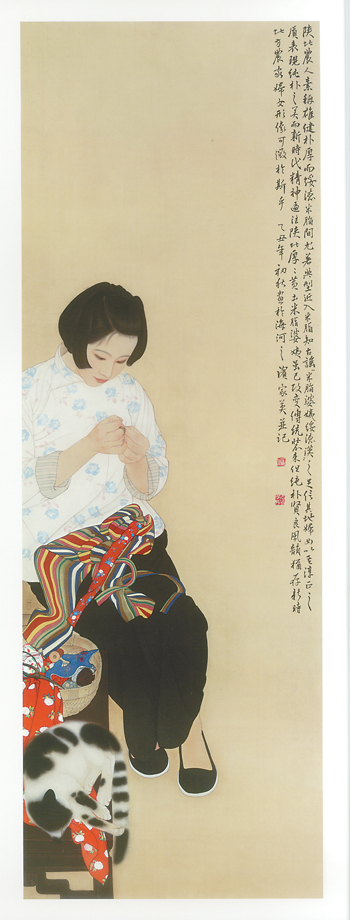 何家英,1957年生于天津。1977年考入天津艺术学院(今天津美术学院)绘画系学习中国画,1980年毕业后留校任教。擅长工笔人物。现为中国美协副主席,天津画院院长、教授,当代工笔画协会副会长,中国艺术研究院博士生导师。获国家“有突出贡献的中青年专家”称号。代表作品有《魂系马嵬》《米脂的婆姨》《酸葡萄》《十九秋》《秋冥》《山地》《街道主任》《无声》等。多次参加全国美展、全国青年美展、当代工笔画学会大展及文化部“中华世纪之光”中国画提名展等展览并屡次获奖,作品《秋冥》被选入百年中国画展。其作品风格严谨精致、朴素大方、造型准确,善于描绘处于静态的人物内心世界。