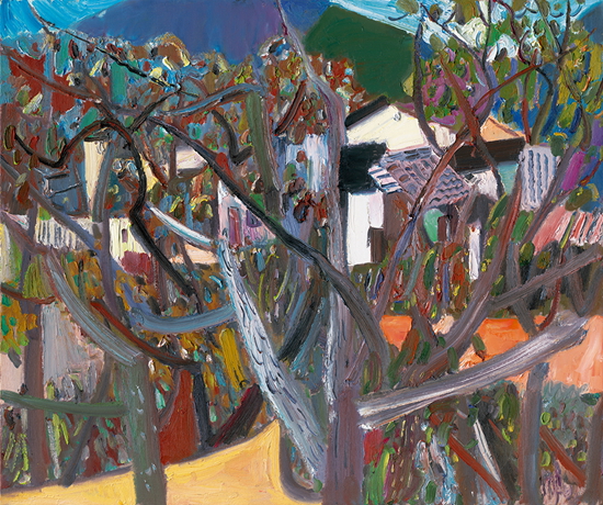 像《鹿野秋色》《桃花园记》《柿子红了》《长岛湾》是不同系列的作品,尽管在艺术语言上极尽主观之变化,但都未脱离中原乡村的景观特征,更未脱离中原文化投射到艺术家身上的个性气质。透过画家那些都市化的现代语言,看到裸露在乡土里的齐鲁之地的文化品质时,相信任何人都可以感受到那种浓郁的中国本土的文化气质与格调。
