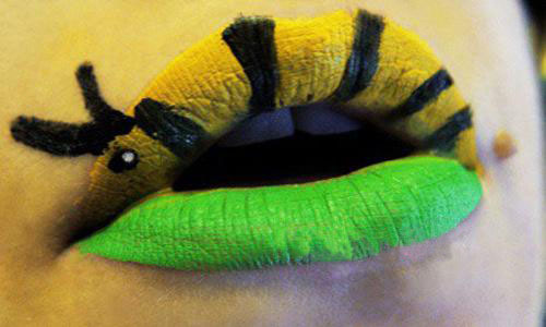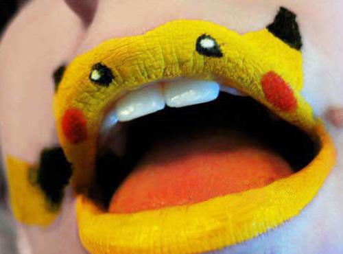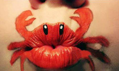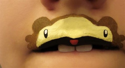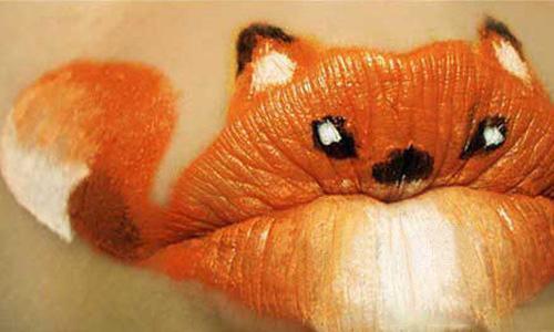 把可爱的动物图案化妆到女孩性感嘴唇上,既性感又好玩还可爱,这很有想象力的做法,看起来是个一个好主意。皮卡丘、小螃蟹,大河马,还有漂亮的火狐狸。它们都是在嘴巴上画出来的!哈,这也太囧了吧?