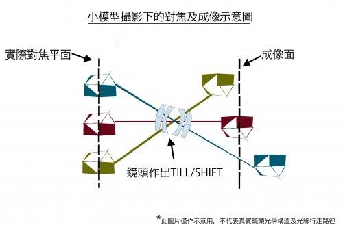 小模型摄影下的对焦及成像示意图