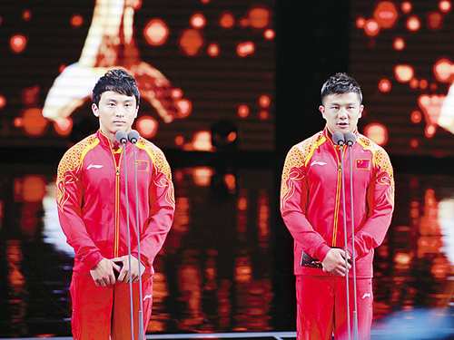 颁奖嘉宾奥运健儿冯哲、陈一冰发表颁奖前言