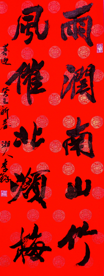 行书雨润风催五言联