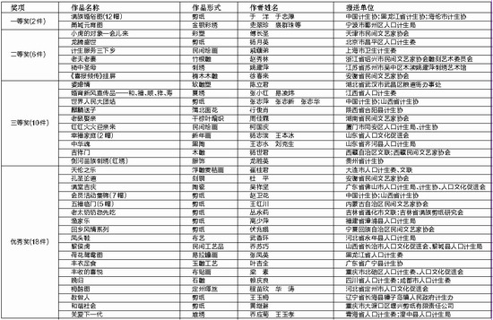 第十四届中国人口文化奖(民间艺术品类)获奖作品名单(36件)