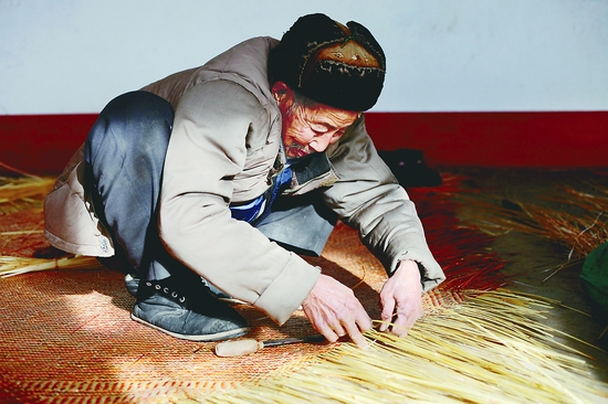 目前也有在村镇建设的比较好的环境里集中制作的,同样要保持足够大的湿度,所以长期从事制作工作,很容易患风湿病。目前,泊里红席也取得了很好的推介和发展。除却条件艰苦这个问题,我个人更多认同和青睐最原始的“地屋子”方式的生产,期盼这项古老的传统手艺,在保持原始纯粹手工的基础上,得到传承,不要被工业化淹没。