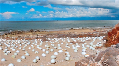 实心瓷卵的第一站是广西北海冠头岭海滩。施少平称,生命的起源在海洋。