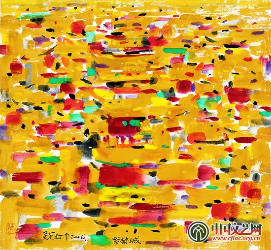 所以,抽象艺术出现的第三个问题,不是因为你要抽象,有先入为主的理念,就把抽象带入了更高的艺术层次。而是抽象艺术发展之无观念之抽象,固然是一个更高层次的创作层面,但弄不好,却往往又会什么都不是。当具象转入抽象,是现代艺术的需要,也是艺术发展的进步。当观念的抽象又被无观念的抽象消解,我以为画家就会进入这么一种状态:在他的自由王国里,可以肆无忌惮地自由挥洒,毫无观念的羁绊,无预设的画笔与色彩,在心与性的行走下出现,随后,他的作品进入自我造境,也即谓纯粹的抽象。然而,问题的另一面,就是当你的创作处于潜意识状态时,不知画什么亦可能就导致了心境与画境始终处于一种混杂的状态,就像人类史前的混沌状态,就艺术本体而论,此艺术性就差矣。退一步而论,即使你是自由的通达,已完全渗入了一种心境的自由行为,如前例所言“重返佛教意识”,然你要抵达佛境,却依然要从出而入,为何,譬若禅宗,悟中是定,我山与彼山,合而融一,然山本身未消失,是有观照物的。密宗虽为口传密诵,尚有观音崇拜,更有千手观音等,即使是藏传佛教,也有五体投地之修行。此入,当形而见之,笔彩之修,是不虚无。大乘之道,小乘之金刚,亦有形(道)有感(硬)。故入佛教之意识,亦并非绝对之无,而若因误读而导致出画面的虚无,那可能只会是一个浅薄的笑话,而非抽象之高雅或菁华。