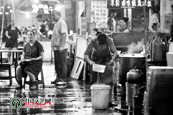 今天显然他的生意不是特别好,很大程度是和他摊点的位置有关系,原先他的摊位靠近长江路,人流量相对大一些,由于这一暑假都在老家,摊位也自然被别的摊户所占据,他只有挪到了街巷的深处。不过他对自己做臭豆腐的手艺很有信心,淮河路步行街李府门口的长沙臭豆腐是他家的“连锁店” ,那是他家的亲戚,他的手艺是亲戚那一手传过来的,臭,显然也是不怕巷子深的。虽然日子过得很清苦,但从老木的言语中能感受到他的积极、乐观,正如我们大多数人一样,把未来深深地寄托在孩子身上。